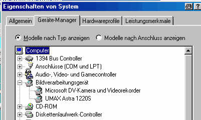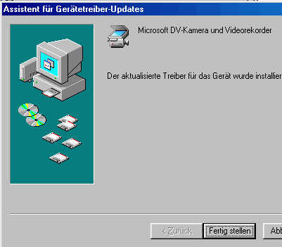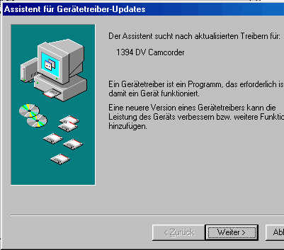 Folgend werde ich beschreiben, wie der funktionstüchtige Treiber "Microsoft DV-Kamera und Videorekorder" anstelle des Treibers 1394 DV-Camcorder" installiert werden kann.
