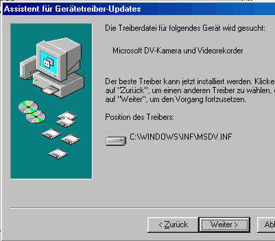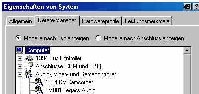 Folgend werde ich beschreiben, wie der funktionstüchtige Treiber "Microsoft DV-Kamera und Videorekorder" anstelle des Treibers 1394 DV-Camcorder" installiert werden kann.